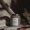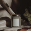 A warm, cinematic candle jar mockup with rich shadows, soft fabric texture and golden highlights. Perfect for showcasing luxury candle labels, seasonal branding and premium packaging designs.