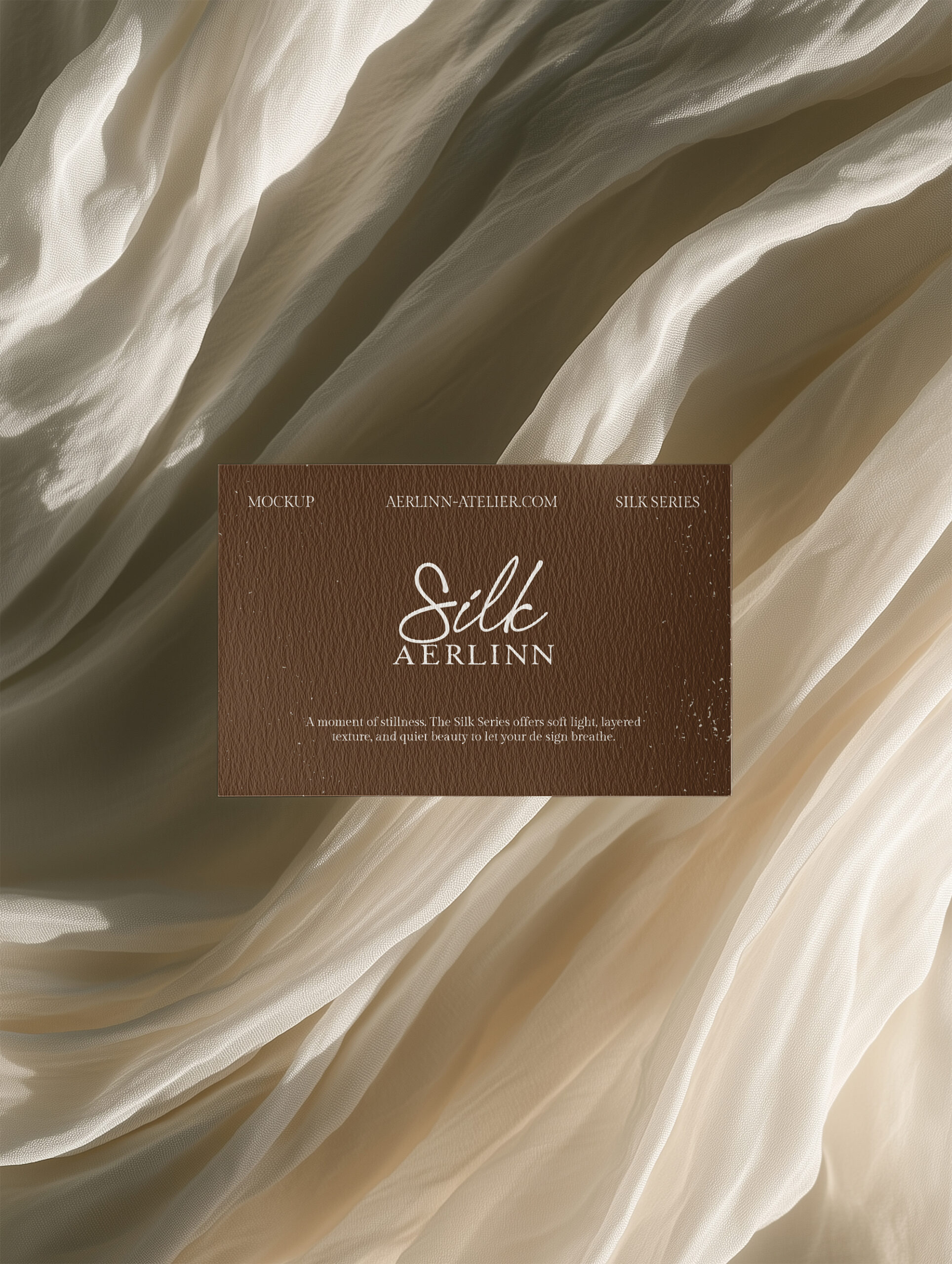 Soft chiffon meets tactile paper for an elegant, photo-real scene. This Photoshop mockup features a horizontal 85 x 55 card with gentle highlights and realistic fibers. Drop your design into the Smart Object for instant results. 3643 x 4835 px PSD, 240 PPI, with displacement map for natural contour. Ideal for logos, minimalist business cards, mood boards, social posts and client presentations.