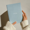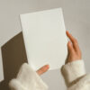 This minimal journal mockup captures soft natural light, subtle paper texture and a calm, timeless atmosphere. Styled with a gentle human touch, the journal is held in hand against a softly lit neutral wall, creating depth, shadow and realism without distracting from your design.